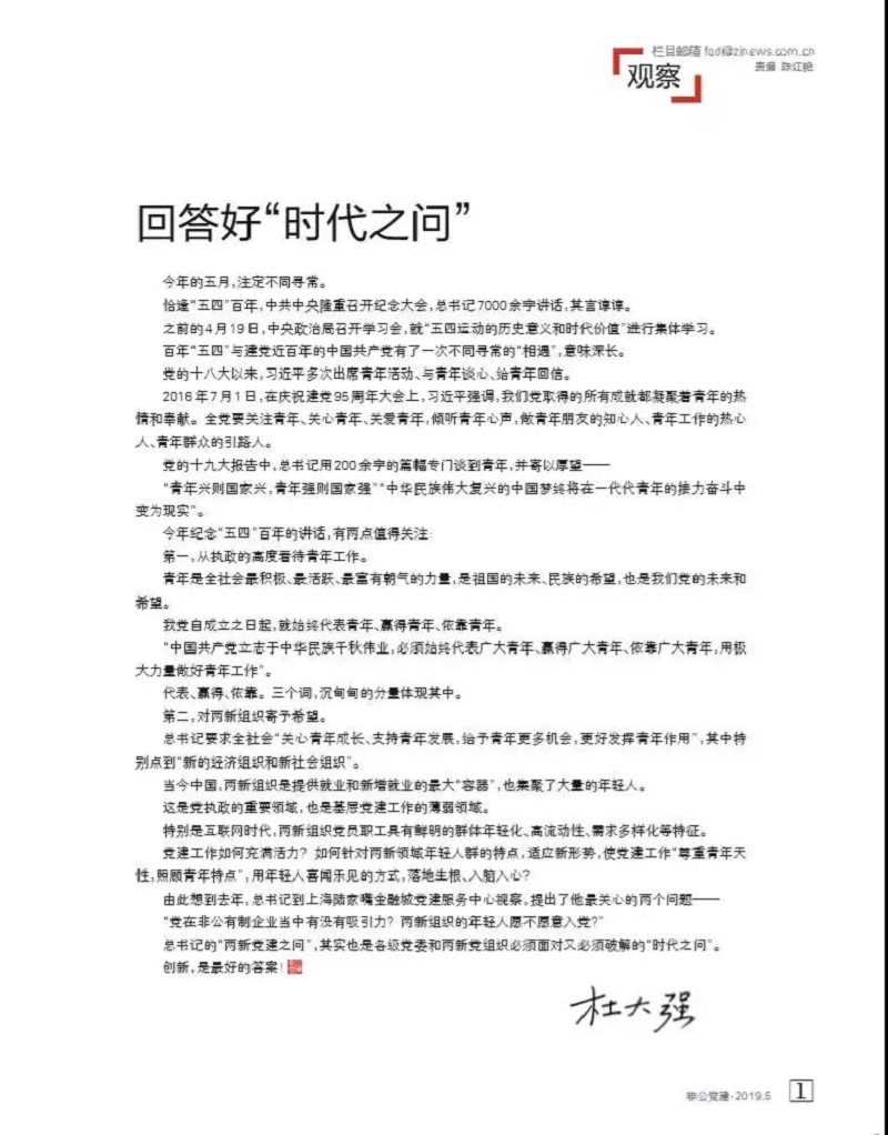 來(lái)源:“非公有制企業(yè)黨建”微信公眾號(hào)(5月24日),作者:杜大強(qiáng),編輯:項(xiàng)佳妮。