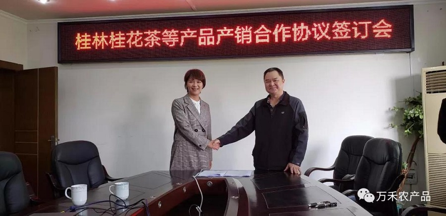 3月29日下午,萬禾農產(chǎn)品有限公司與桂林茶葉科學研究所簽訂了桂林桂花茶等產(chǎn)品產(chǎn)銷合作協(xié)議。桂林市茶葉科學研究所所長韋靜鋒、桂林萬禾農產(chǎn)品有限公司黨總支書記、總經(jīng)理崔萌佳、董事長陶辛有等人出席簽約儀式。
