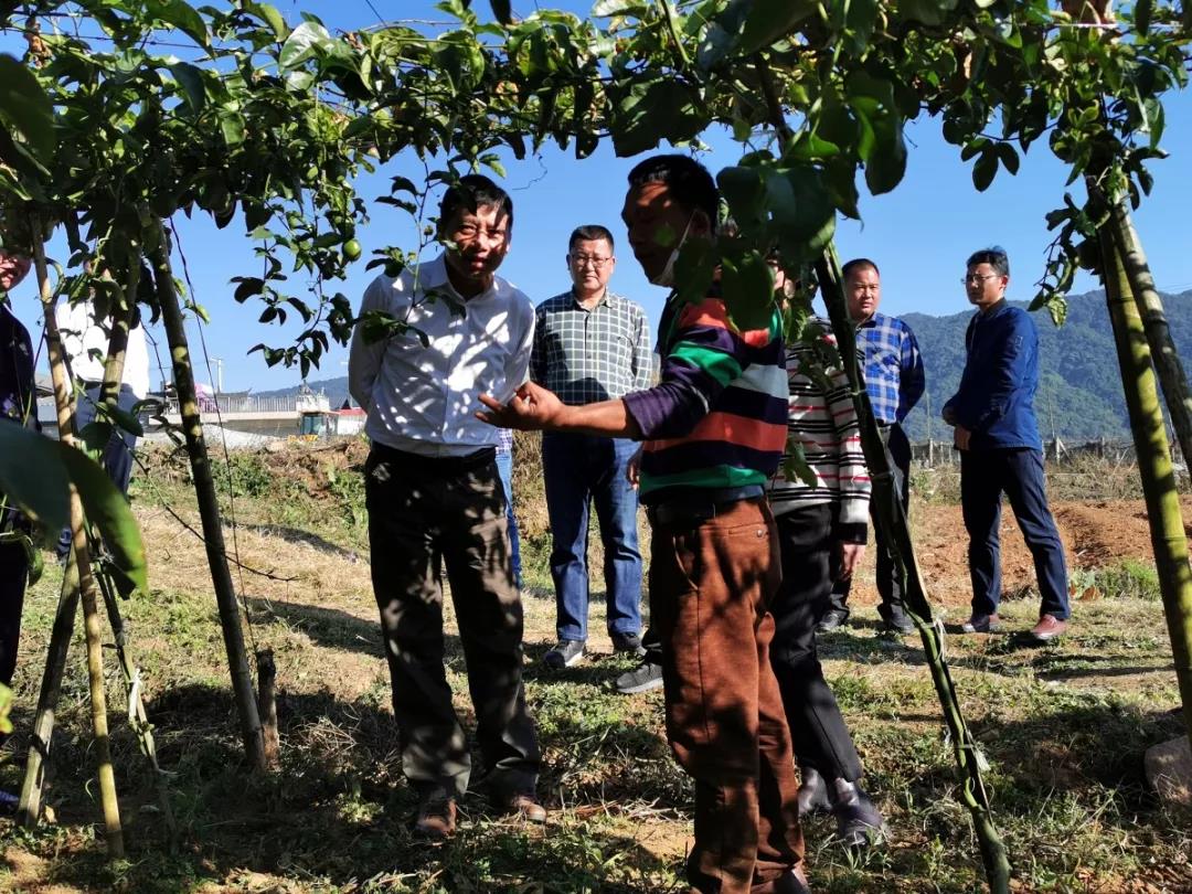▲衛(wèi)州長(zhǎng)一行領(lǐng)導(dǎo)了解萬(wàn)禾百香果種苗情況