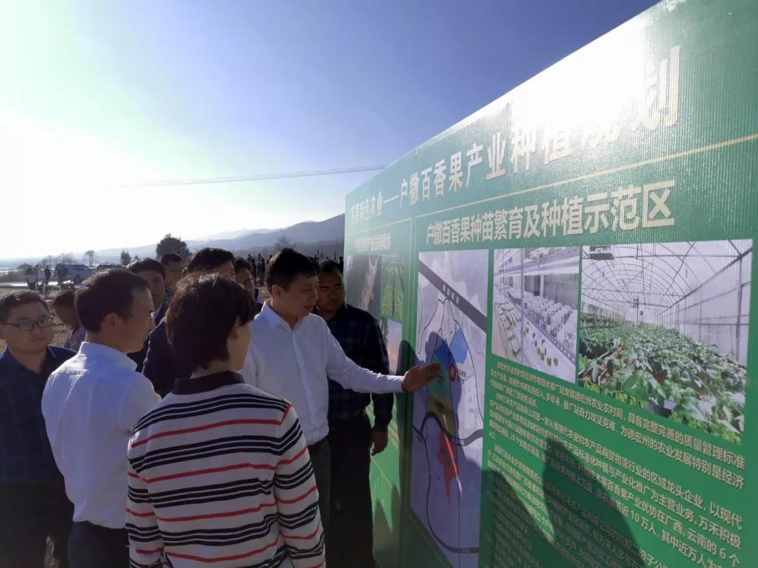 1月17日下午,德宏州人民政府州長(zhǎng)衛(wèi)崗、州人民政府副州長(zhǎng)李正環(huán)一行在德宏州農(nóng)業(yè)農(nóng)村局局長(zhǎng)閆信淮、隴川縣縣長(zhǎng)鄭洪云等相關(guān)部門領(lǐng)導(dǎo)的陪同下蒞臨隴川縣戶撒鄉(xiāng)調(diào)研萬(wàn)禾百香果產(chǎn)業(yè)扶貧工作。桂林萬(wàn)禾農(nóng)產(chǎn)品有限公司總經(jīng)理崔萌佳、公司運(yùn)營(yíng)副總監(jiān)陽(yáng)定中全程陪同并作詳細(xì)匯報(bào)。