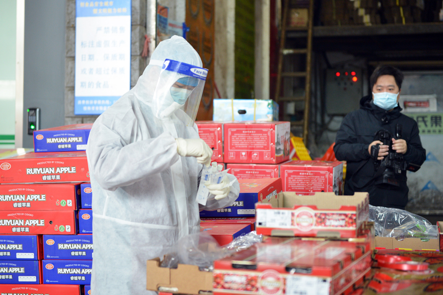 臨近春節(jié),為加強(qiáng)疫情防控常態(tài)化工作,1月27日上午,桂林五里店果蔬批發(fā)市場邀請到桂林疾控中心的專業(yè)檢測人員對市場進(jìn)口水果以及環(huán)境開展抽樣核酸檢測工作。