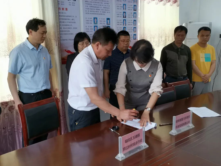 經(jīng)五通鎮(zhèn)政府委派工作組幫助協(xié)調(diào),桂林聚慧萬(wàn)禾公司與村委雙方達(dá)成合作共識(shí)。