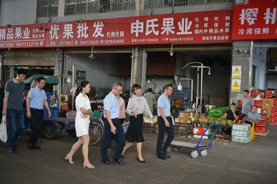 調(diào)研當天上午,國家農(nóng)業(yè)農(nóng)村部調(diào)研組一行在自治區(qū)、桂林市及七星區(qū)相關(guān)部門人員陪同下首先步行調(diào)研了寧鐵桂林東萬禾冷鏈物流園園區(qū),崔書記陪同講解。