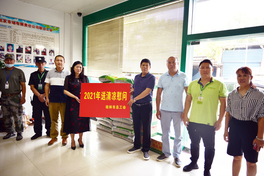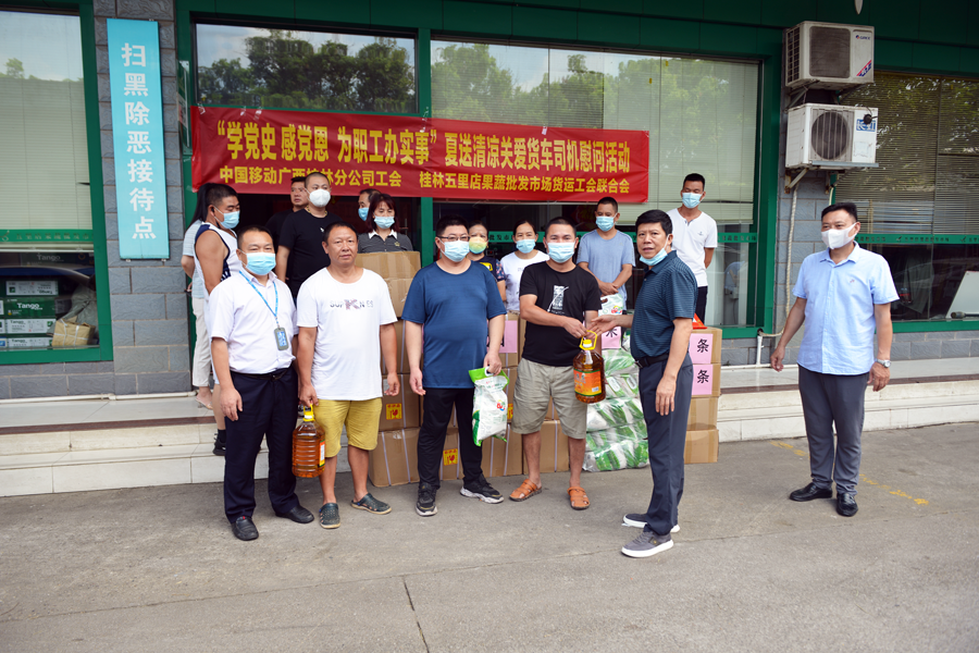 今年8月,由桂林市總工會開展“夏日送清涼”慰問活動(dòng),為五里店果蔬批發(fā)市場工會聯(lián)合會會員和貨車司機(jī)送來綠豆等防暑、防高溫暖心物品。