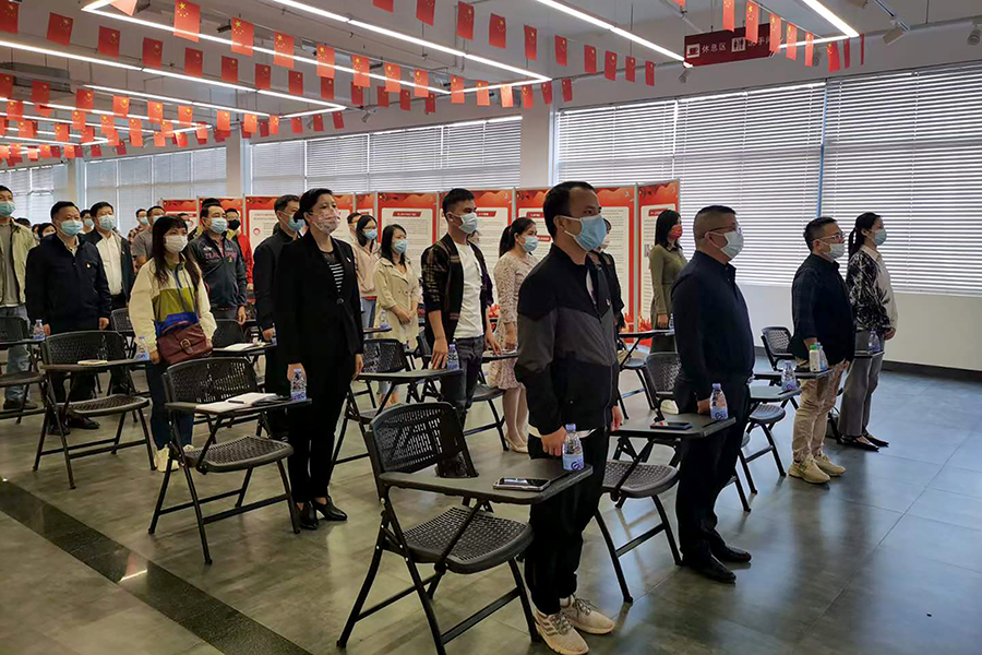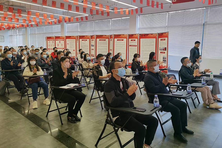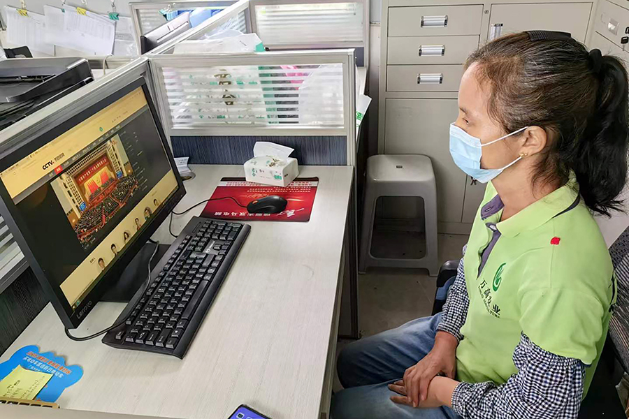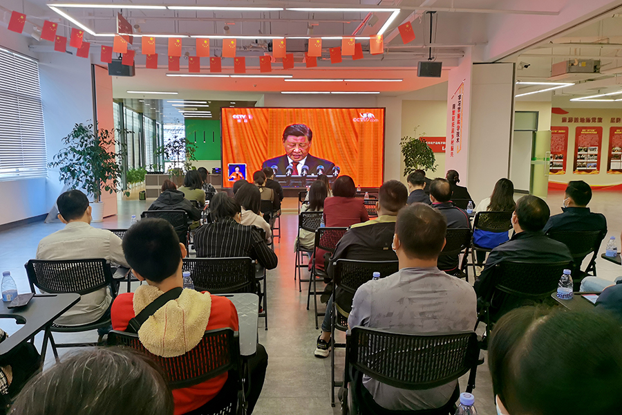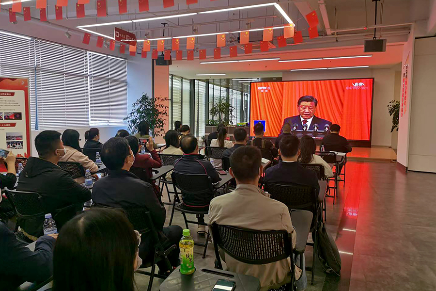 ▲萬禾集團(tuán)黨總支組織人員觀看二十大開幕會