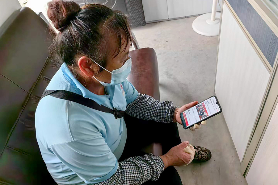 ▲云南瑞麗萬高黨支部黨員收看二十大開幕會