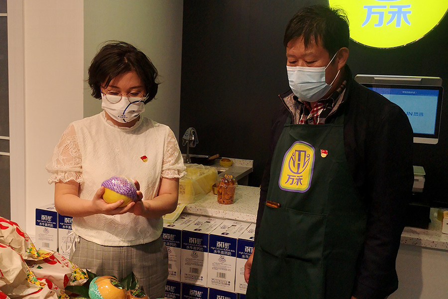 通過黨員現(xiàn)場服務(wù)顧客、切瓜果擺盤等手把手示范工作,提升員工服務(wù)認(rèn)同感與主動性,以黨建引領(lǐng),規(guī)范服務(wù),進(jìn)一步提升員工現(xiàn)場服務(wù)水平,讓顧客感受到更有溫度、更有鮮度的服務(wù)。