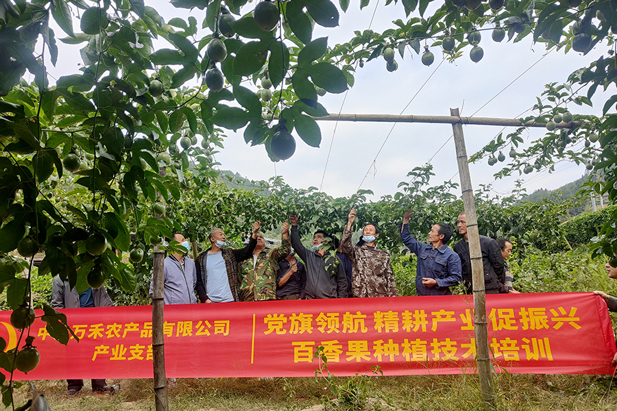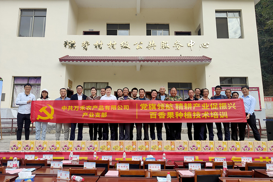 為打造桂林市兩新黨建鄉(xiāng)村振興示范基地,2021年年初,萬禾集團設(shè)立了“桂林聚慧萬禾現(xiàn)代農(nóng)業(yè)發(fā)展有限公司”子公司,并因地制宜發(fā)展青皮甘蔗、百香果和育苗等優(yōu)勢。通過開展“黨旗領(lǐng)航、精耕產(chǎn)業(yè)促振興”送百香果種植技術(shù)下鄉(xiāng)等活動,促進農(nóng)業(yè)增效和農(nóng)民增收,充分發(fā)揮黨員先鋒模范作用,助力鄉(xiāng)村振興。