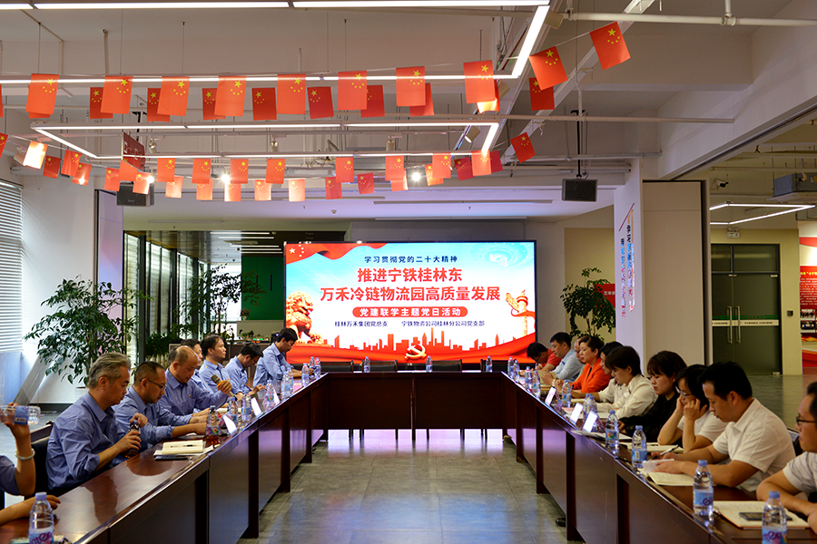 為深入學(xué)習(xí)貫徹落實黨的二十大會議精神,加強廣西寧鐵物資工業(yè)有限公司桂林分公司、萬禾集團間的溝通和交流,推進寧鐵桂林東萬禾冷鏈物流園高質(zhì)量發(fā)展。11月11日下午,萬禾集團黨總支和廣西寧鐵物資工業(yè)有限公司桂林分公司黨支部在萬禾集團黨建活動中心開展“學(xué)習(xí)二十大,推進寧鐵桂林東萬禾冷鏈物流園高質(zhì)量發(fā)展”黨建聯(lián)學(xué)主題黨日活動。