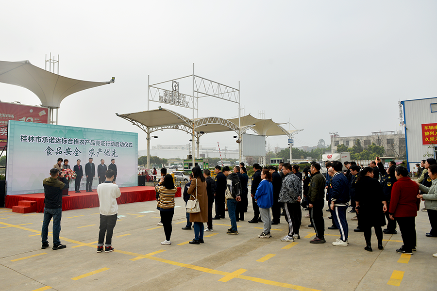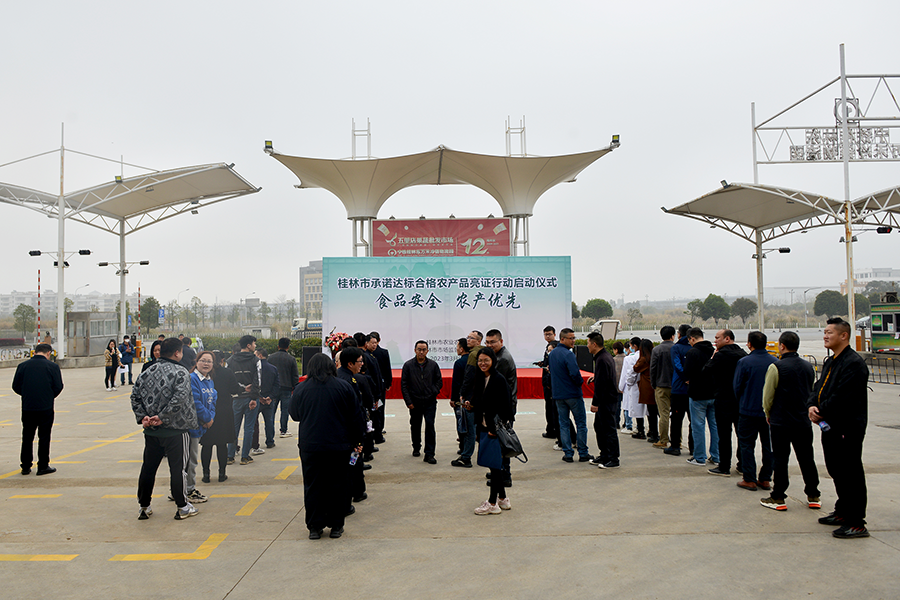 3月9日上午,桂林市農(nóng)業(yè)農(nóng)村局、桂林市市場監(jiān)督管理局在萬禾桂林東站冷鏈物流園東門舉辦“桂林市承諾達(dá)標(biāo)合格農(nóng)產(chǎn)品亮證行動啟動儀式”。