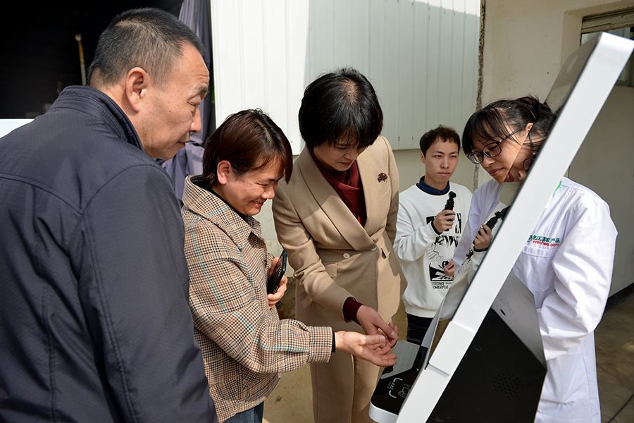 工作人員演示使用“食安溯源”系統(tǒng)開具食用農(nóng)產(chǎn)品承諾達(dá)標(biāo)合格證