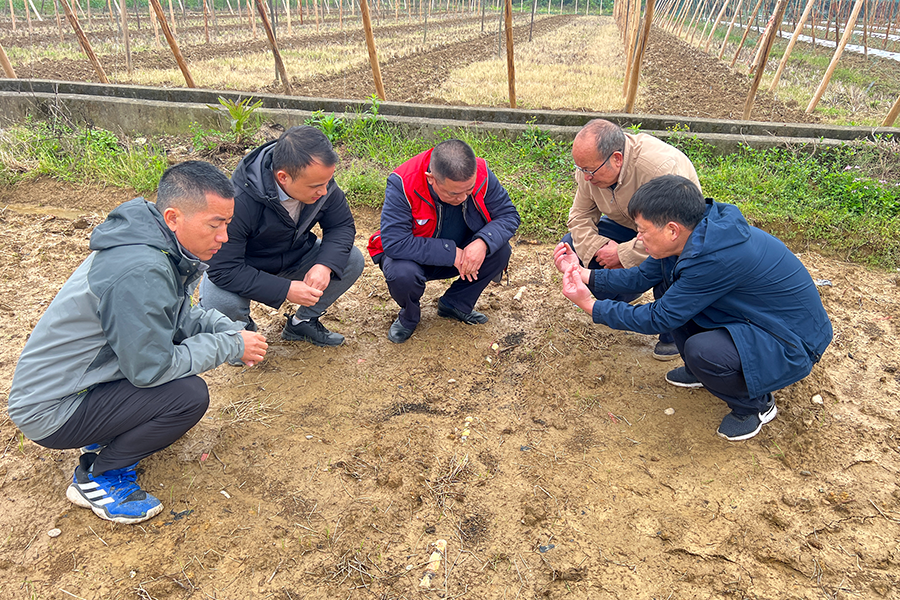 李家文一行認(rèn)真聽取產(chǎn)業(yè)部支部書記駱榮杰關(guān)于基地受災(zāi)和災(zāi)后恢復(fù)生產(chǎn)情況匯報(bào),對(duì)基地開展的防災(zāi)搶險(xiǎn)以及災(zāi)后恢復(fù)生產(chǎn)工作給予了充分肯定。查看已經(jīng)出苗的青皮甘蔗種莖受害情況,并進(jìn)行現(xiàn)場(chǎng)指導(dǎo):青皮甘蔗種莖下種后及時(shí)蓋上地膜可以保溫增濕,促進(jìn)青皮甘蔗齊苗。同時(shí)指出,未來(lái)幾天還會(huì)出現(xiàn)強(qiáng)對(duì)流天氣,要抓緊時(shí)間蓋好地膜,降低損失。后期要注意檢查青皮甘蔗苗受凍情況,發(fā)現(xiàn)缺苗及時(shí)補(bǔ)種。