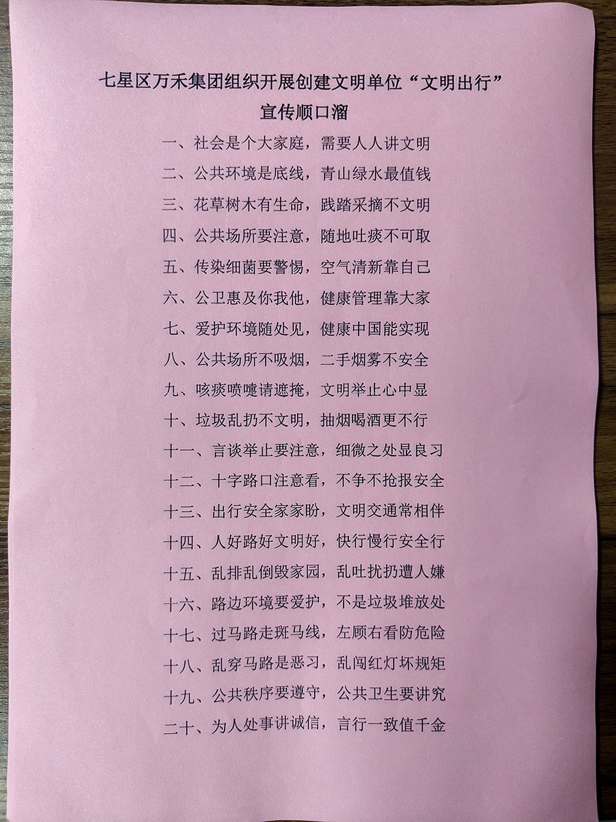 ▲“文明出行”宣傳順口溜宣傳單
