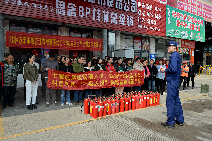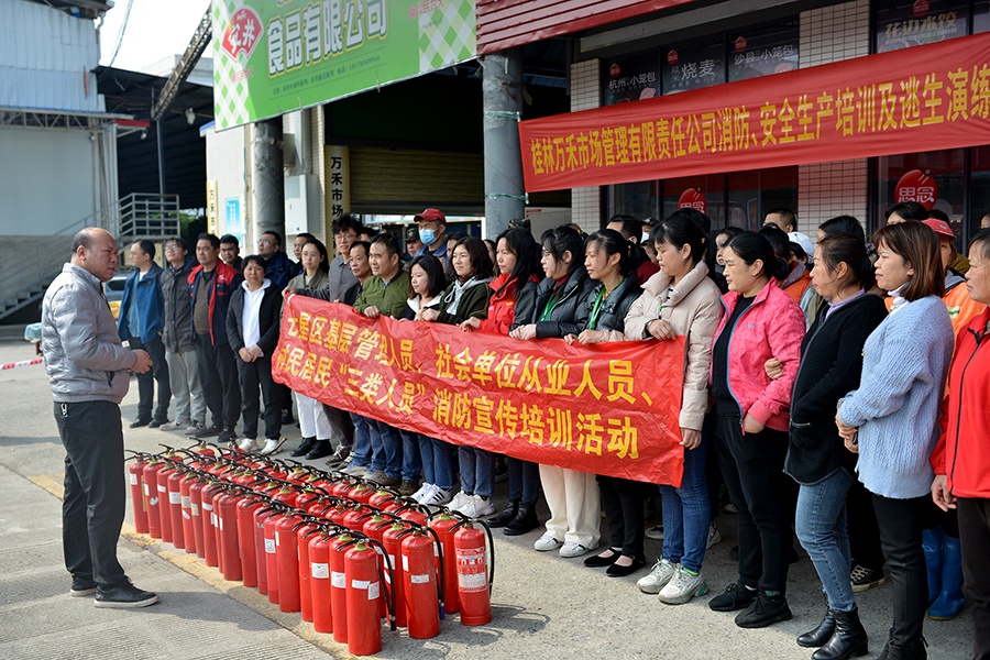 為增強黨員干部及市場經(jīng)營戶消防安全意識,有效掌握防火、滅火應(yīng)急處置能力,4月25日,萬禾集團五里店市場支部組織黨員干部及市場經(jīng)營戶在五里店果蔬批發(fā)市場開展“增強消防意識,筑牢安全防線”主題黨日活動,桂林市七星消防隊應(yīng)邀到場進行消防安全培訓(xùn)。