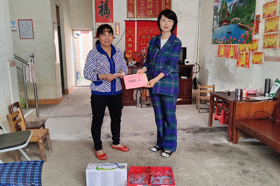 ▲為困境家庭學(xué)生贈送愛心助學(xué)金及學(xué)習(xí)用具