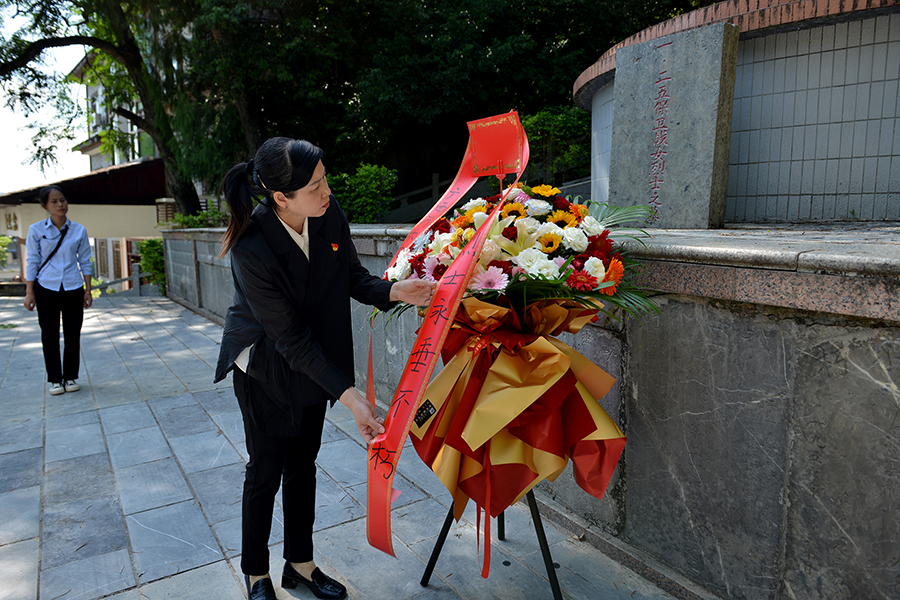 ▲敬獻(xiàn)花籃緬懷革命先烈