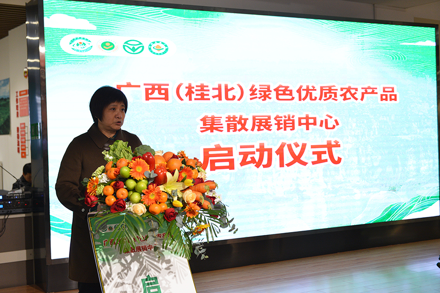 儀式現(xiàn)場,萬禾集團(tuán)黨總支書記、總經(jīng)理崔萌佳首先介紹了廣西(桂北)綠色優(yōu)質(zhì)農(nóng)產(chǎn)品集散展銷中心概況,桂林市農(nóng)業(yè)農(nóng)村局副局長叢莉就桂林市農(nóng)業(yè)產(chǎn)業(yè)發(fā)展相關(guān)情況進(jìn)行發(fā)言,自治區(qū)綠色食品發(fā)展站站長莫建軍就廣西綠色優(yōu)質(zhì)農(nóng)產(chǎn)品發(fā)展相關(guān)情況發(fā)表講話,自治區(qū)農(nóng)業(yè)農(nóng)村廳農(nóng)產(chǎn)品質(zhì)量安全監(jiān)管處副處長葛維宣布廣西(桂北)綠色優(yōu)質(zhì)農(nóng)產(chǎn)品集散展銷啟動中心啟動。